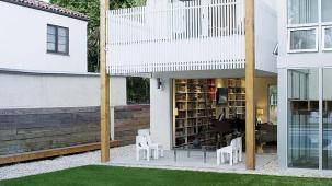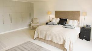 This apartment with nice shades of blue and a beautiful bathroom will help you to relax after work.